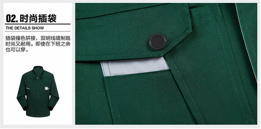 JL-QD225定做工作服以軍綠色為主調(diào),領(lǐng)口采用淺灰色搭配,襯托出時裝者的時尚動感。甄選高品質(zhì)面料,讓您穿著舒服,時尚。