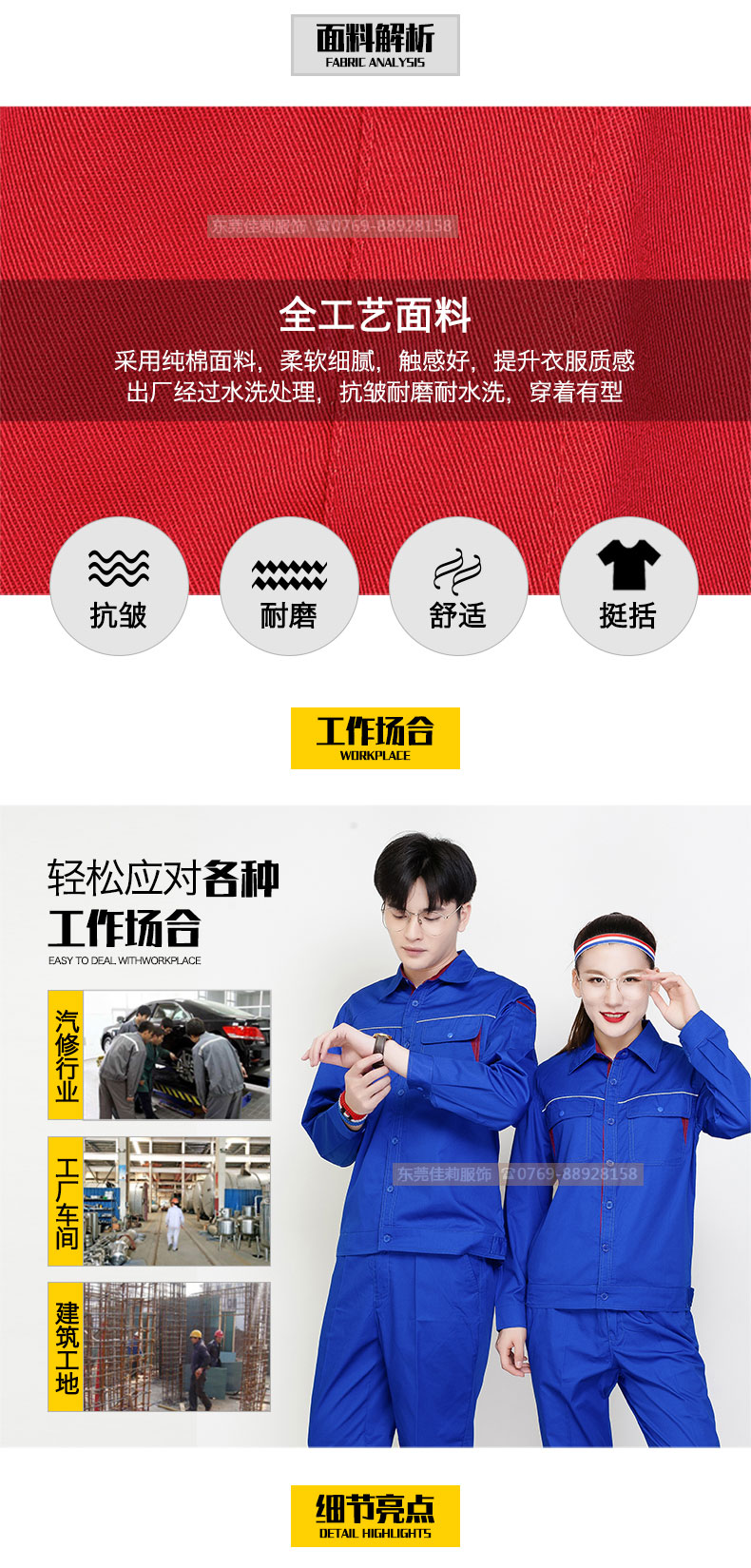 夏季工程服 維修機械工作服 JL-XJ135